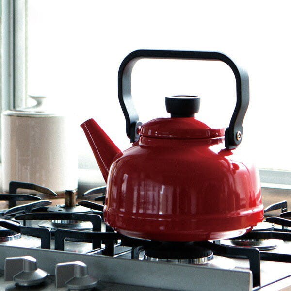 熱効率の良い琺瑯製のケトルはガス火でもIH調理でもお湯が早く沸きます。 また、琺瑯は金気を出さないので、お茶を淹れたり、パックを入れて麦茶を沸かすのにうってつけの道具です。 内側は酸やアルカリに強い耐熱水性釉薬仕上げ。耐久性の高い特殊な釉薬を使用しています。 たっぷりのお湯を沸かし、おいしいお茶やコーヒーをお楽しみいただけます。 ムダのないシンプルなカタチ。ハンドルとフタつまみは熱くなりにくいフェノール樹脂製です。