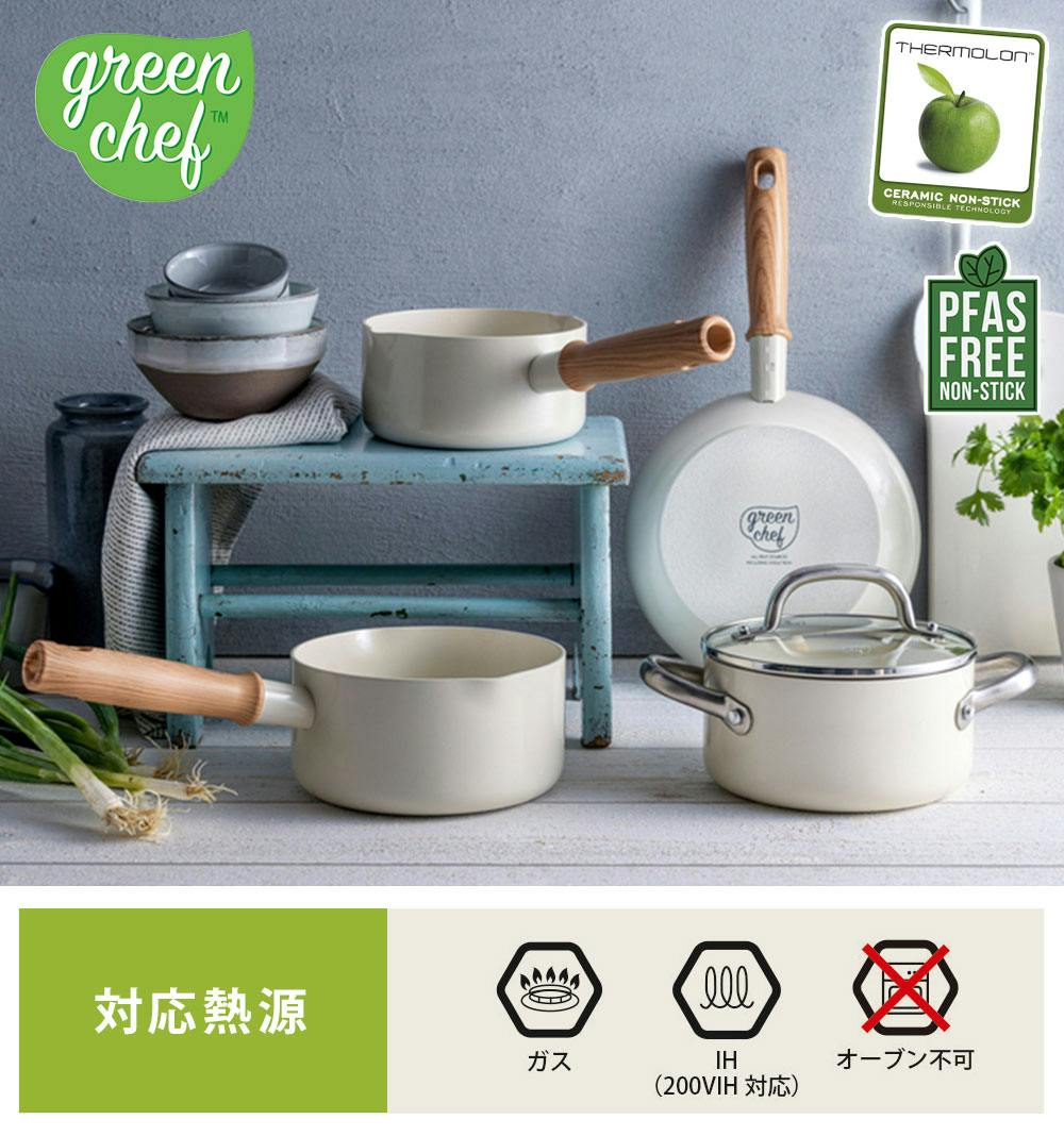●生産国 中国 ●PFAS、PFOA、鉛、カドミウム不使用 ●食洗機使用可 ●220℃までのオーブン調理可能 【グリーンシェフでは、自然枯渇を防ぐためにパッケージの使用を極力削減しております】 フライパンの縁などコーティングのかかりが薄い箇所は輸送時に多少のカケが発生する可能性がございます。 この様なやむを得ないコーティングのカケは、ご使用に影響がない物ですので良品とさせて頂いておりますのでご返金、ご返品の対象外とさせて頂いております。 また、カケた箇所のコーティングから剥がれ(捲れ)てしまう