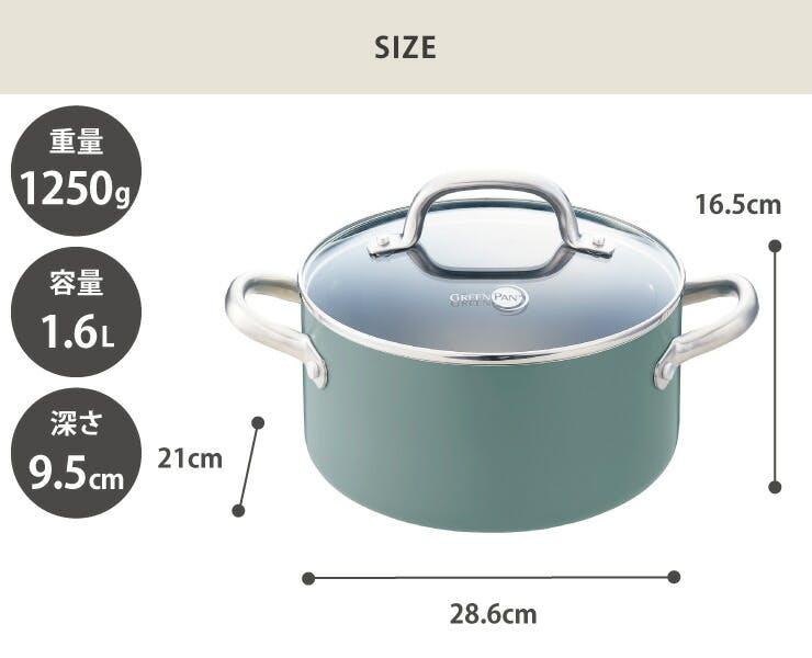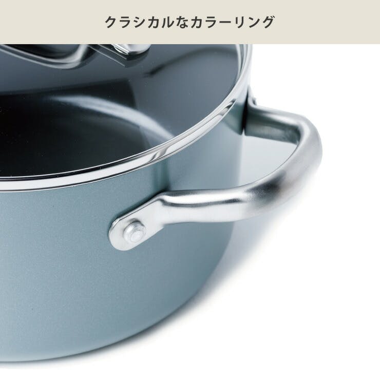 本体:アルミニウム合金 表面加工(内面・外面):セラミックコーティング ハンドル:ステンレス鋼 ガラス蓋:強化ガラス ステンレス鋼