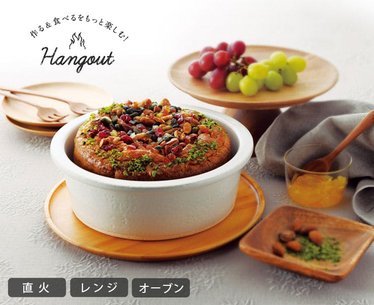 「作る&食べるをもっと楽しむ」 キッチンとアウトドアの境目を無くし、もっと自由に料理を作ること食べることを楽しみたいそんな願いから生まれたhangoutシリーズ。 信楽焼ならではの素朴な土の風合いを活かしたユニークなカタチのグリルパン。