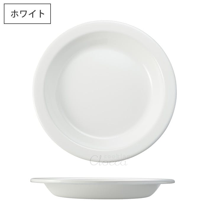 クラシカルな雰囲気のホーロー製プレート。 ホーローの光沢があるホワイトは清潔感があって、和洋中を問わず料理映えします。 23cmはパスタやカレー、メインディッシュのプレートとしてお使いいただけるサイズ。程よい深さがあるので、ソースなどもこぼれにくく気にせず盛りつけができます。 ほうろう用の鋼板を使用していて丈夫。適度な重量で手に取った時に安定感があります。 スタッキングして収納や持ち運びができるので、アウトドアにもおすすめです。