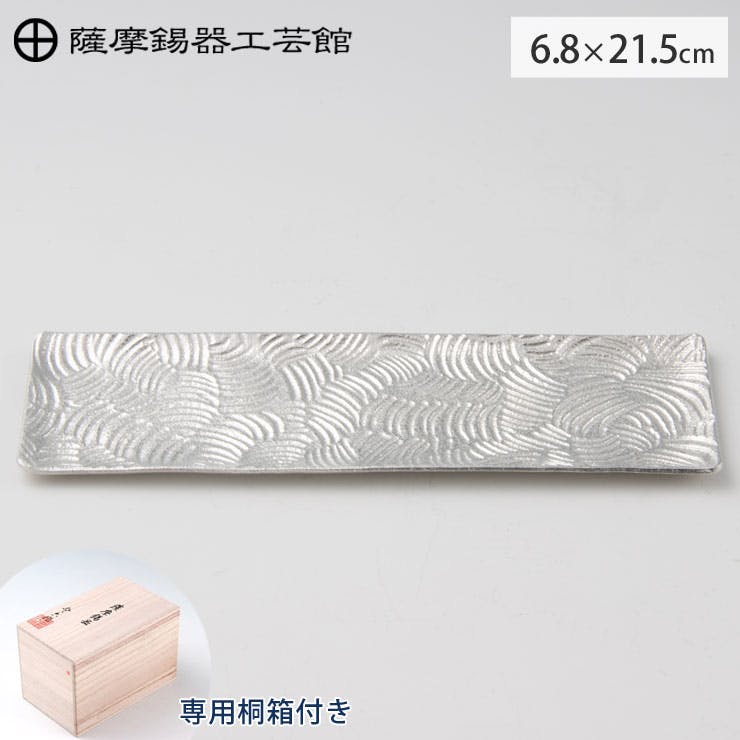 薩摩錫器 銘々皿 角型 波 21.5cm 桐箱入り 岩切美巧堂 1030-2【錫製 食器 錫 皿 角皿 鹿児島県 伝統工芸品 日本製】