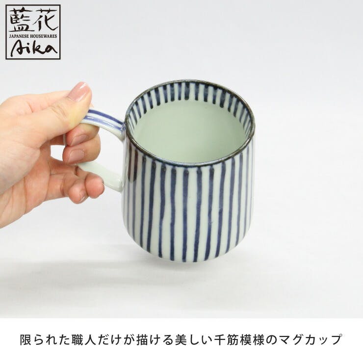 波佐見焼 千筋 たっぷりマグ 藍花【マグカップ コップ ティーカップ ギフト 波佐見焼 陶器 和食器 食器】 さび千筋