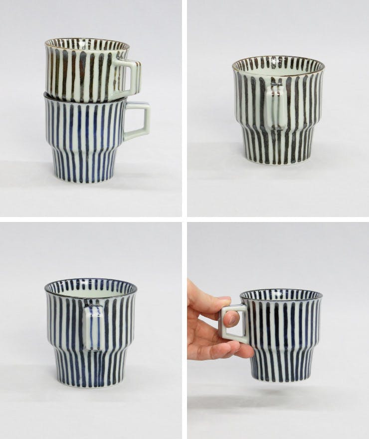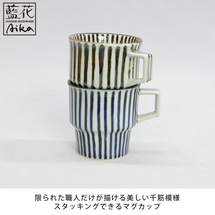 波佐見焼 千筋 スタッキングマグ 藍花【マグカップ コップ ティーカップ スタッキング ギフト 波佐見焼 陶器 和食器 食器】 さび千筋