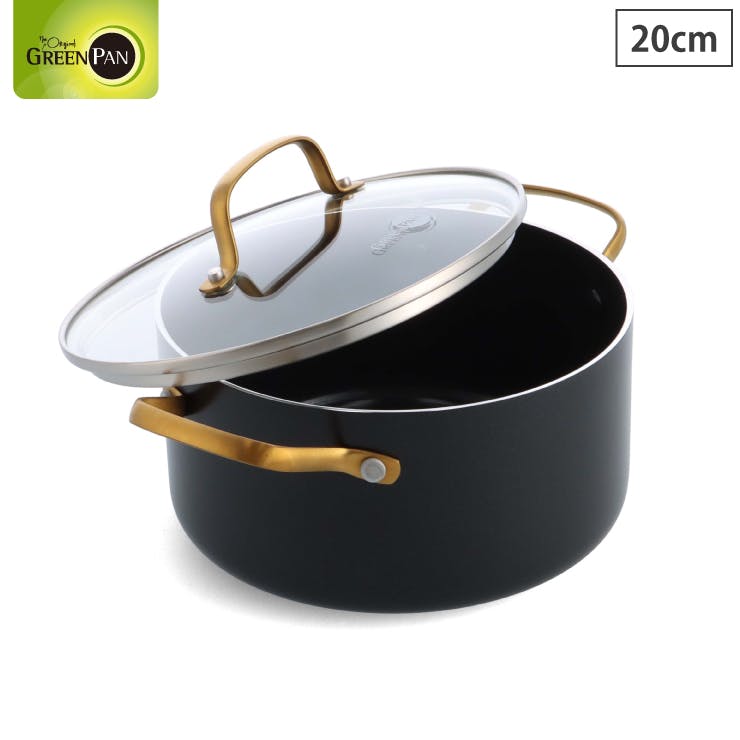 グリーンパン ストゥディオ キャセロール 20cm ガラス蓋付 IH対応 GREENPAN【両手鍋 キャセロール 鍋 直火 アルミ セラミックコーティング PFOA PFASフリー 調理器具 フッ素不使用】