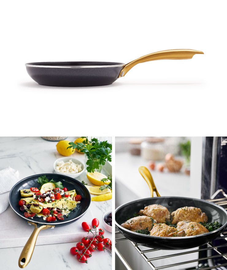 新シリーズ「STUDIO(ストゥディオ)」は、クールなブラックのボディとゴールドハンドルを組み合わせた洗練したデザインのコレクション。 他には見ないグリーンパンらしいデザインです。