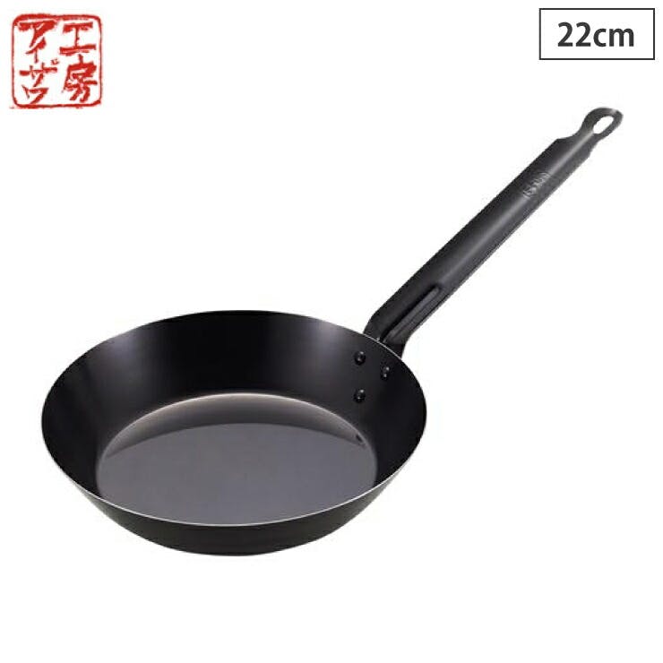工房アイザワ ブラックピーマン 鉄 フライパン 22cm 直火専用 軽量 70373【鉄フライパン 軽い アイザワ 日本製】