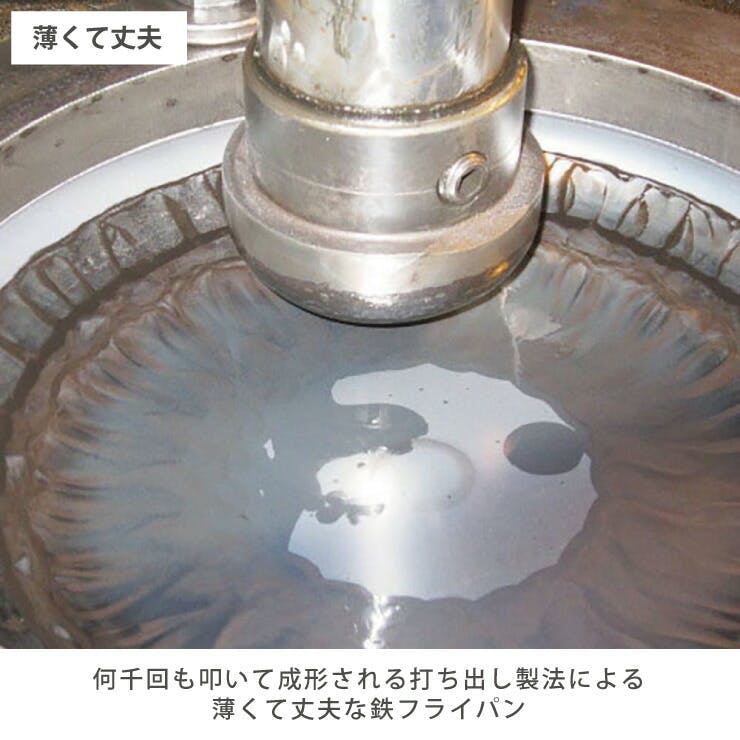 鉄を数千回も叩き締めて作る、日本で唯一の打ち出し製法で作られている、山田工業所の家庭用フライパン。 山田工業所は業務用フライパンを作り続けて半世紀以上、横浜中華街でのシェア率80%を誇り多くのプロに長年愛されています。