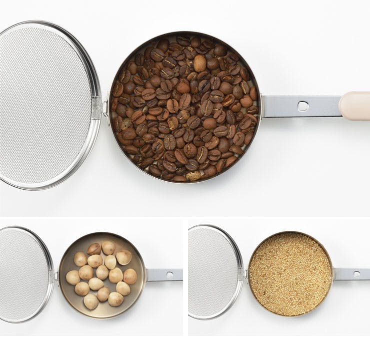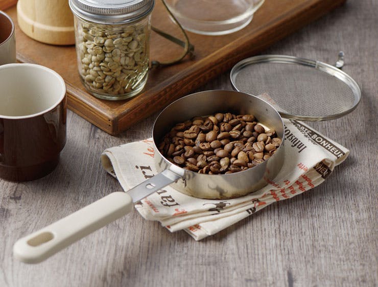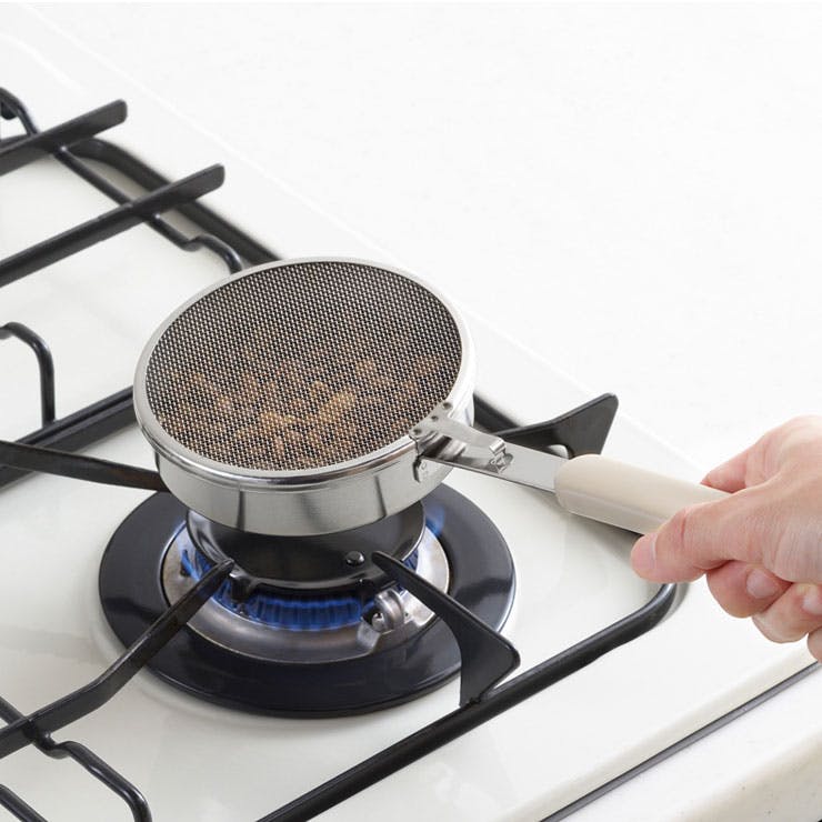 コーヒー豆やお茶を煎る時に使えるステンレス製の煎りパン。洗いごまや銀杏なども煎るのにも便利なサイズ感。 網付きなので、中身が飛び出しにくく、状態を確認しながら煎ることができます。常に動かしながら安全に直火で熱を加えることができます。 自分好みの味を追求でき、ご家庭で煎りたての美味しさを楽しめます。