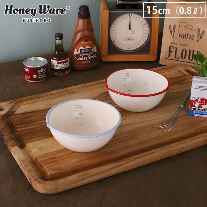 富士ホーロー BMS ビームス ホーロー 片口 ボウル 15cm 0.8L【琺瑯ボール 片口 調理ツール ボール ほうろう 縁赤 縁青 キッチン用品】 ホワイト