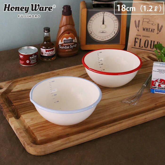 • 富士ホーロー BMS ビームス ホーロー 片口 ボウル 18cm 1.2L【琺瑯ボール 片口 調理ツール ボール ほうろう 縁赤 縁青 キッチン用品】 ホワイト