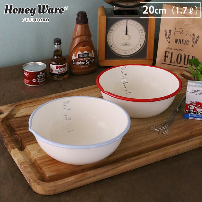富士ホーロー BMS ビームス ホーロー 片口 ボウル 20cm 1.7L【琺瑯ボール 片口 調理ツール ボール ほうろう 縁赤 縁青 キッチン用品】 ホワイト