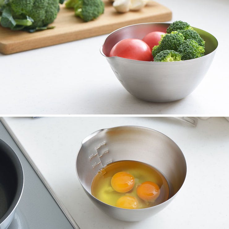 すっきり注げるワイドな注ぎ口が特長的なしずく型の調理ボウル。 ワイドな注ぎ口は流しやすく、液だれしにくい形状です。 卵を溶いて玉子焼き器に流し入れたり、小麦粉を溶いた生地を鉄板に流し込んだり、きれいに注ぐことができ、スムーズにお使いいただけます。 軽量仕上げで手軽に使え、毎日の調理にぴったりです。