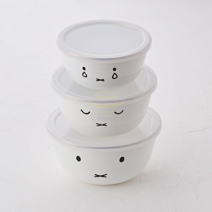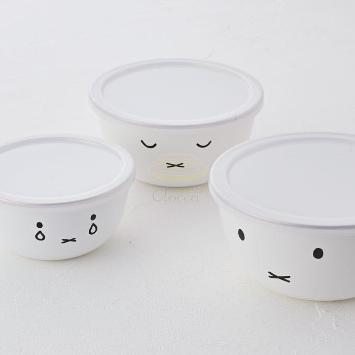 サイズごとにミッフィーの3種類の表情がデザインされた丸型の保存容器3点セット。 ホーローは酸や塩分に強いため、食材を選ばず保存ができます。 表面のガラス質は汚れが付きにくく、匂いうつりも少ないので、漬け物やキムチなどの発酵性食品の保存にも適しています。