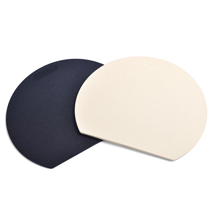包丁との相性の良い木製の感触に似たエラストマーまな板。 Dの形で奥行きがあり、調理がしやすく、まな板を立てかけても安定感があります。6mm厚のため、適度な重みがあり、調理中も滑らず使えます。 抗菌剤入り(SIAA)で衛生的に安心してお使いいただけます。耐熱温度130度で食器乾燥機、洗浄機対応です。 プラスチックのように水の弾きがよく、乾きも早く雑菌の繁殖も防げます。ゴムのように弾力性があり、傷が付きにくいです。
