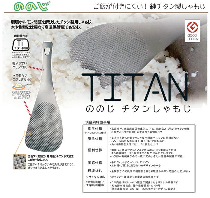 ののじ チタンしゃもじ NTS01T【金属 軽量 調理ツール 食洗機対応】