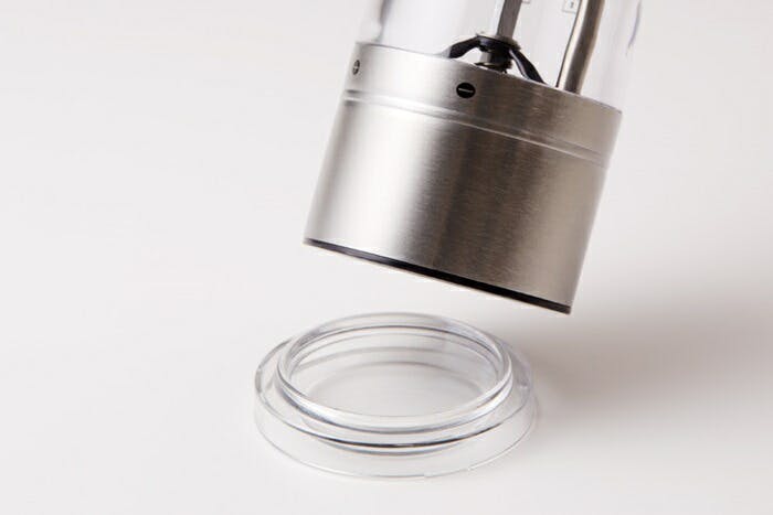 ワンタッチの簡単操作、押している時間だけ作動するのでお好みの量を挽くことができます。 刃は岩塩にも使えるセラミック製なので錆びにくく、ソルトとペッパーどちらも使用可能です。 また、使用時には片手でワンプッシュで使え、稼働時にはLEDライトが点灯し明るく手元を照らします。 残量が見やすい透明なキャビン、汚れを防ぐ専用スタンド付きと実用性が高いのも魅力です。