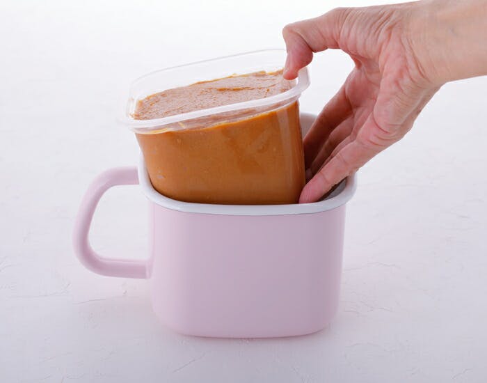表面がガラス質でできているホーローは、薬味やスパイスなどをいれてもにおいがつきにくく清潔です。 鋼板に白い釉薬をまとったホーローは熱に強くオーブン調理が可能です。(電子レンジ使用不可) ニオイがつきにくく、汚れを落としやすいので、食材の保存にも最適です。 加熱調理時は必ずフタを外してください。