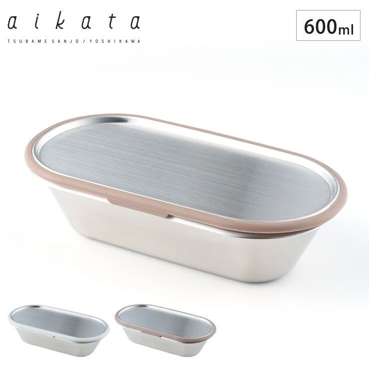 アイカタ ステンレスコンテナ ストッパー無 600ml PD3017 ブラウン PD3018 ヨシカワ aikata【保存容器 ステンレス フードコンテナ お弁当箱 ランチボックス 1段 日本製】 グレー