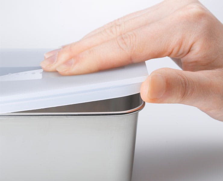 清潔に使えて、すばやく冷やせるステンレス製のフードコンテナー。 においがつきにくく、冷蔵、冷凍保存が短時間でできます。 フタにある窓から中身が透けて見えます。