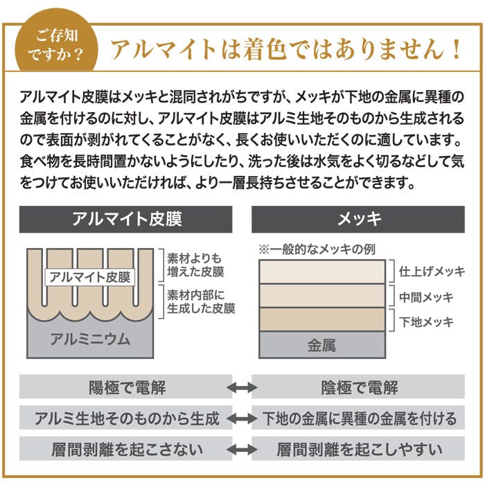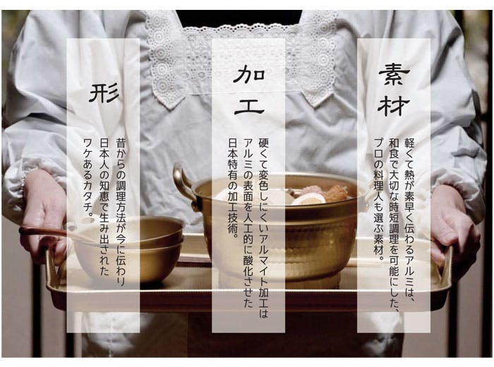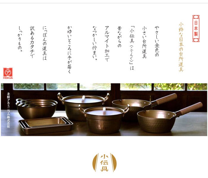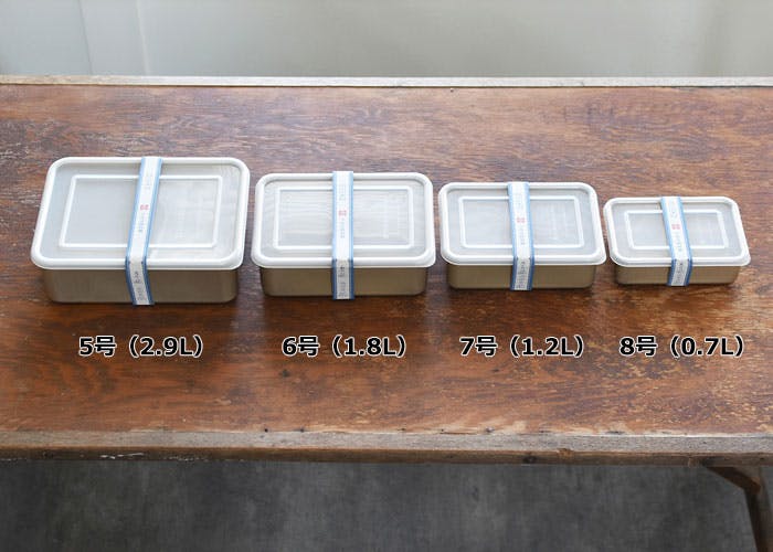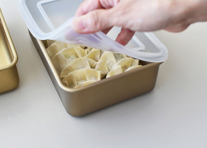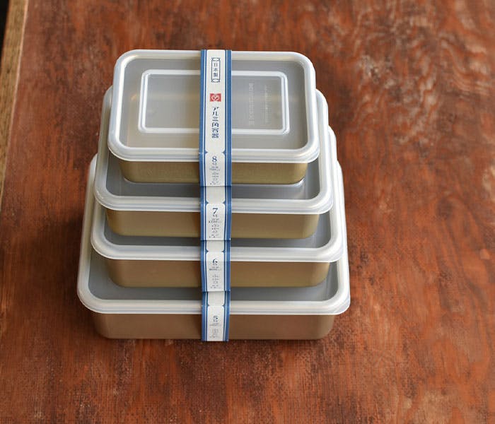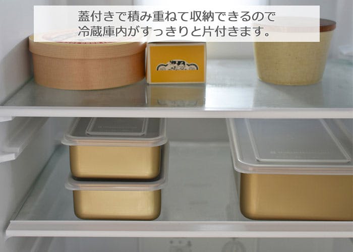 小伝具(こでんぐ)シリーズのアルミ角容器は、軽くて扱いやすいアルミ製。 食材の下ごしらえや、調理補助にさっと使えて重宝します。 熱伝導にも優れているのですばやく冷蔵、冷凍保存が可能です。 本体表面は黄金色のしゅう酸アルマイト加工が施され、腐食や錆を防ぎます。