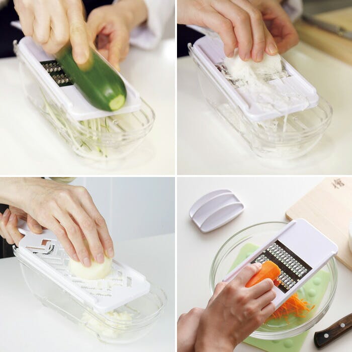SELECT100 スライサー、おろし器、せん切り器、細せん切り器、指ガード ※スライサーに厚み調節機能はありません。