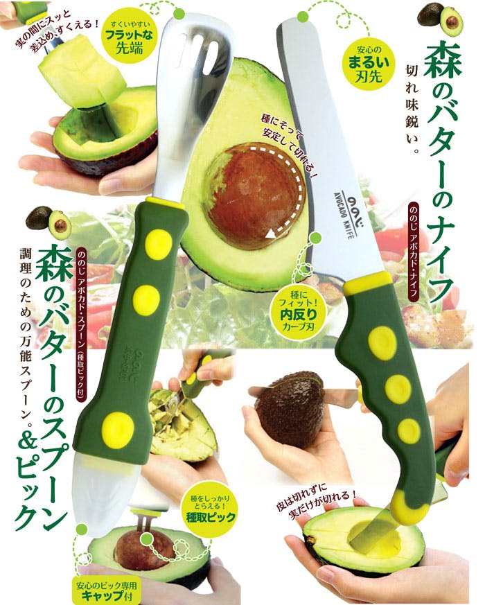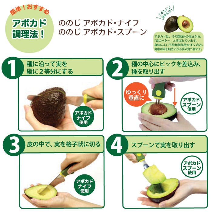 アボカドの実を取り出すのに適した「アボカド・スプーン」。 種取ピックもついていて「アボカド・ナイフ」と組み合わせれば、手を汚しにくくアボカドを楽しめます。