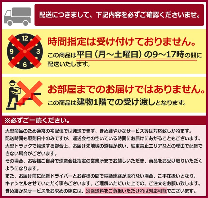 • 離島の場合、配送日を指定しても指定日通り届かない場合がございます。
