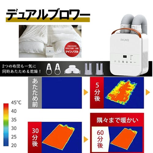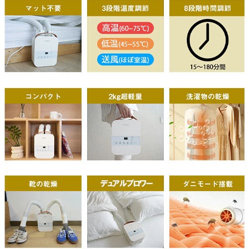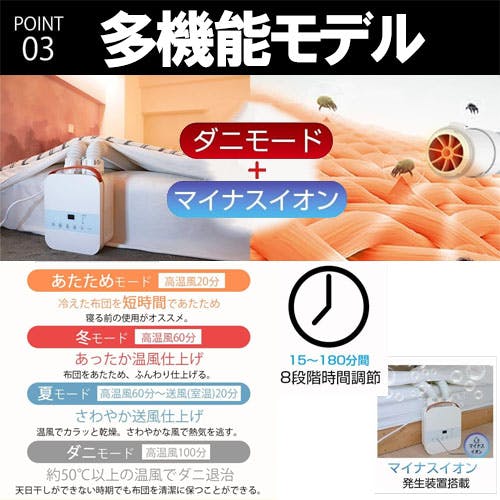 3Way ツインノズル布団乾燥機 ダニ退治 乾燥機・洗濯乾燥にも対応 BW103 ホワイト