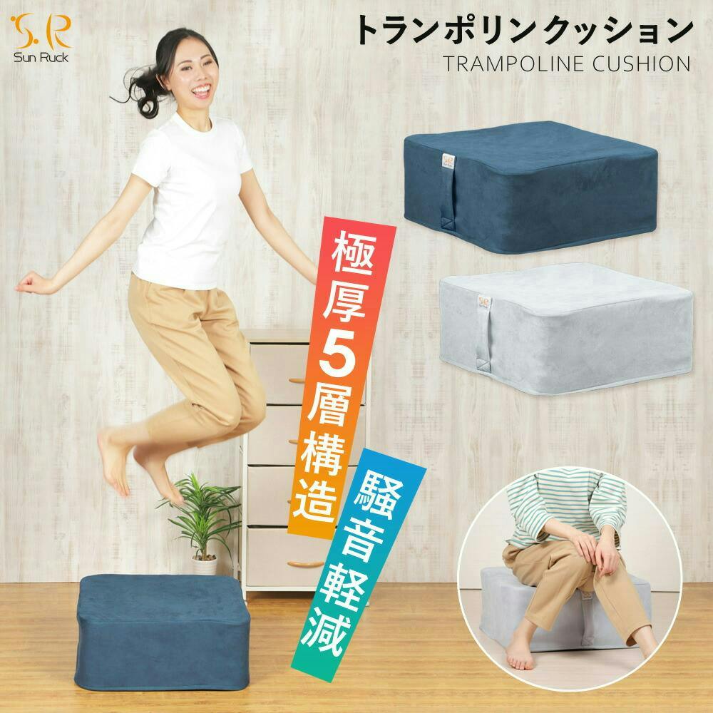 SunRuck トランポリンクッション ジャンポリン SR-TC010-NV 5層構造 50×50cm 静音 20cm厚 滑り止め ダイエット エクササイズ 運動 室内 ジャンプ 大人用 子供用 クッショントランポリン スクエア 正方形 踏み台 おしゃれ トランポリン クッション 【公式】