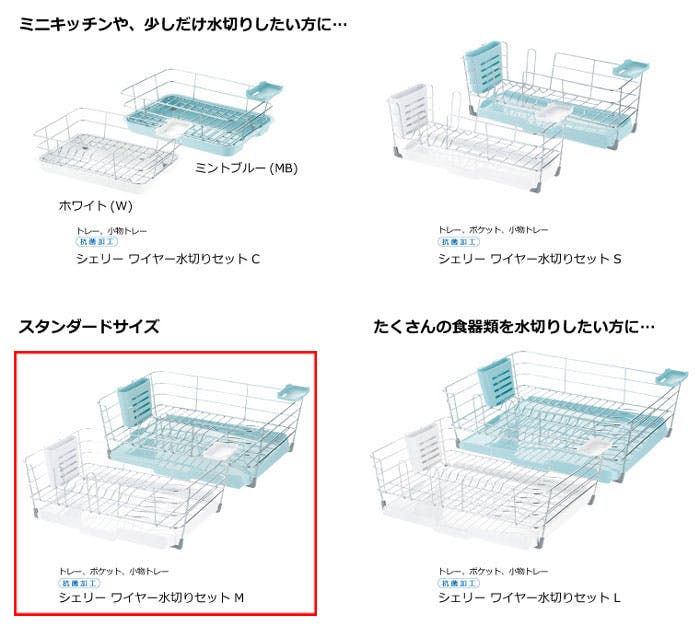 リッチェル シェリー ワイヤー水切りセット M ミントCheri Richell 16904-9 16905-6【ラック かご カゴ スリム コンパクト トレー】 ミントブルー