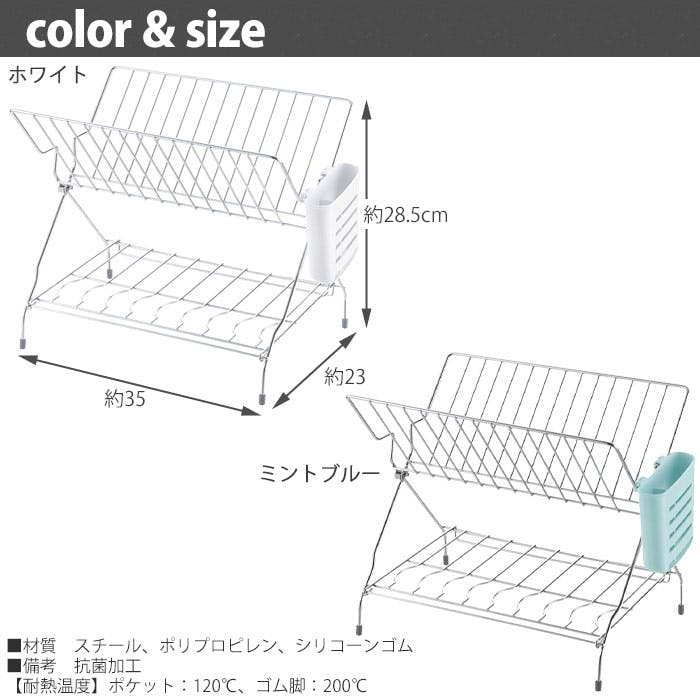 リッチェル シェリー たためる2段水切り ミントCheri Richell 16908-7 16909-4【ラック かご カゴ 折りたたみ】 ミントブルー