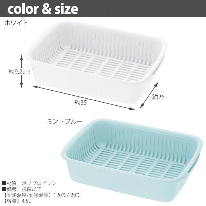 抗菌加工 【耐熱温度/耐冷温度】120℃/-20℃ 【容量】4.5L