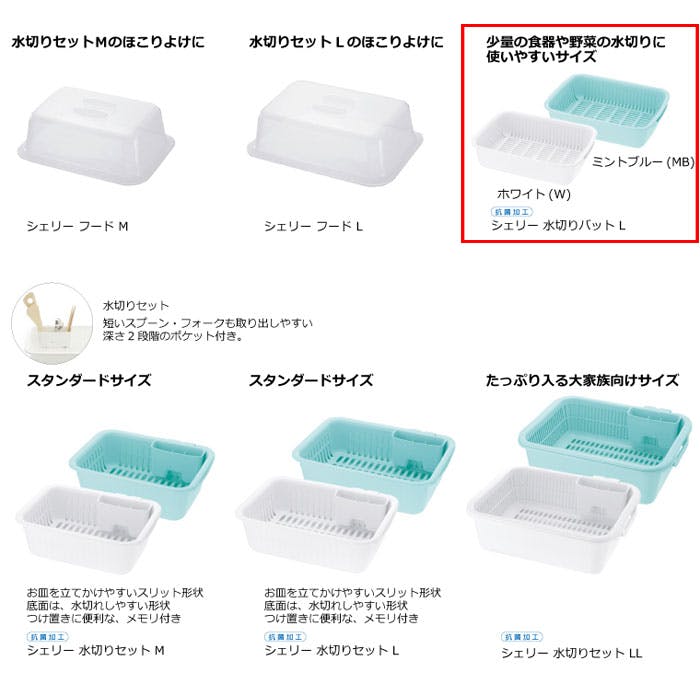 リッチェル シェリー 水切りバット L ミントCheri Richell 16910-0 16911-7【水切り 野菜 かご カゴ ざる ザル 日本製】 ホワイト