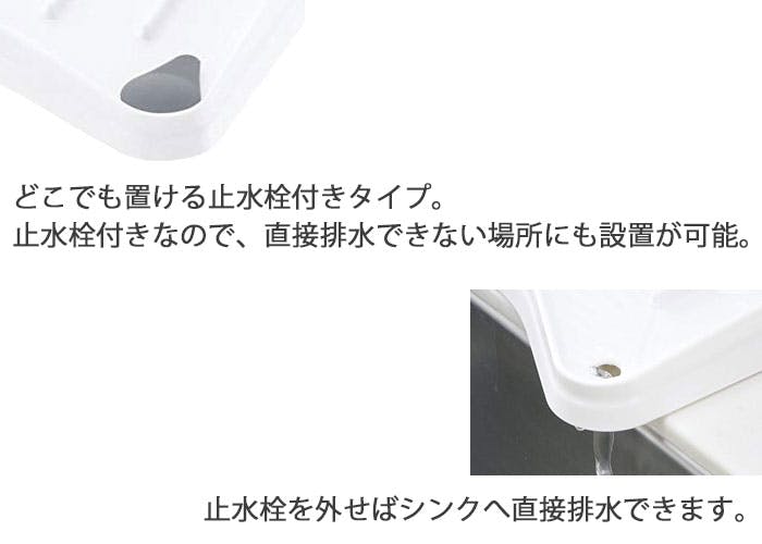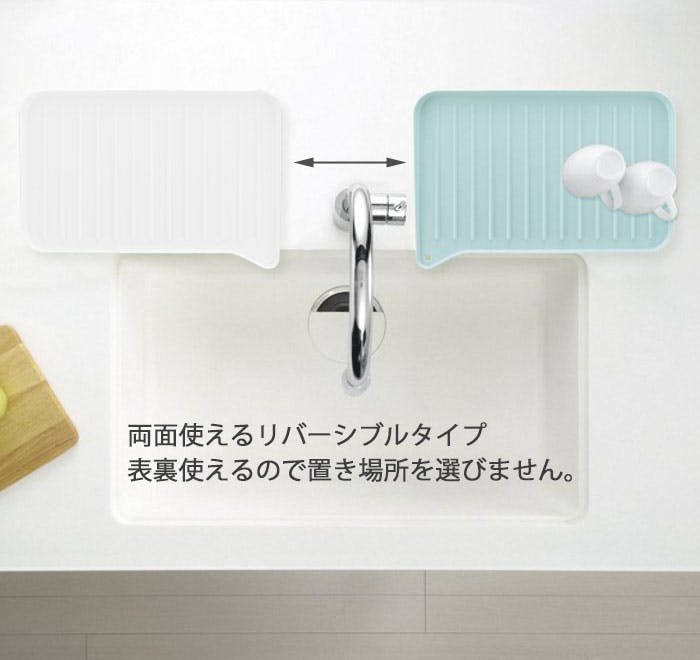進化するキッチンに合わせて使いやすさを実現! 両面使えるリバーシブルタイプなので置き場所を選びません。 どこでも置ける止水栓付きで、直接排水出来ない場所にも設置できます。 食器が排水面に触れず、清潔。 キッチンの引き出しにも収納しやすい薄型です。