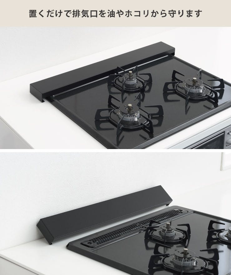 ●魚焼きグリルを使用する際は、カバーを後ろにずらすなどして、排気口を開けてください。 ●コンロを使用しているときや使用後は高温になりますので、ご注意ください。 ●加熱直後の熱い鍋やフライパンは置かないでください。