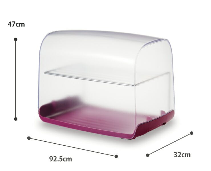 2斤の山型食パンも丸ごとおさまる大きなパンケースです。 付属のステンレスラックを使えば、手作りドーナツやクロワッサンなども2段に並べることができるので、余熱を取る際にも保管にも便利です。