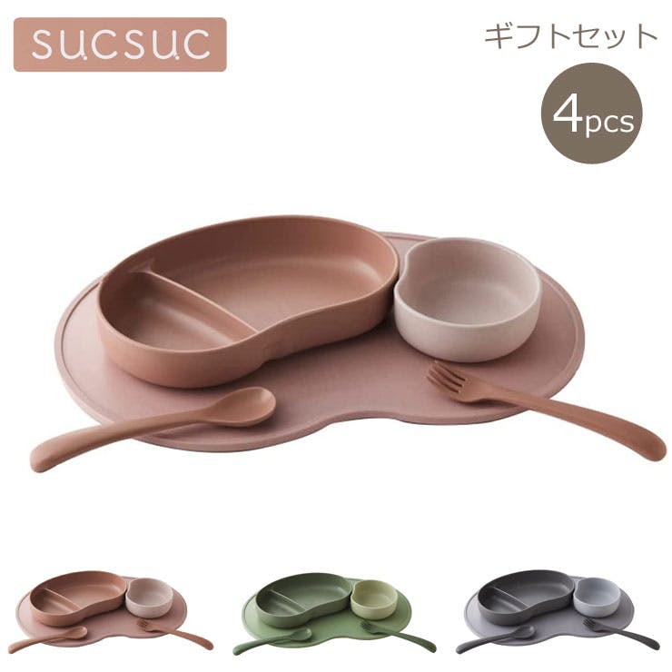 SUCSUC スクスク 子供用食器 ギフトセット 4PC 逸品社 シュガーランド【子供 食器セット ベビー食器セット お食事セット バイオマスプラスチック 抗菌 日本製】 グレー