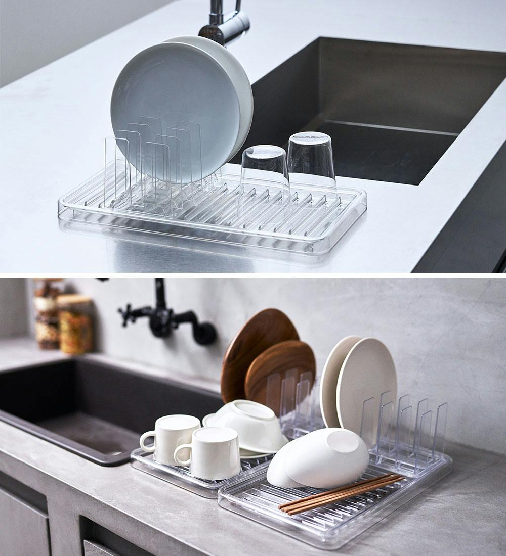 クリア素材でどんなキッチンにも溶け込むスタンディングドレイナー。 キッチンに置いても存在感を感じません。