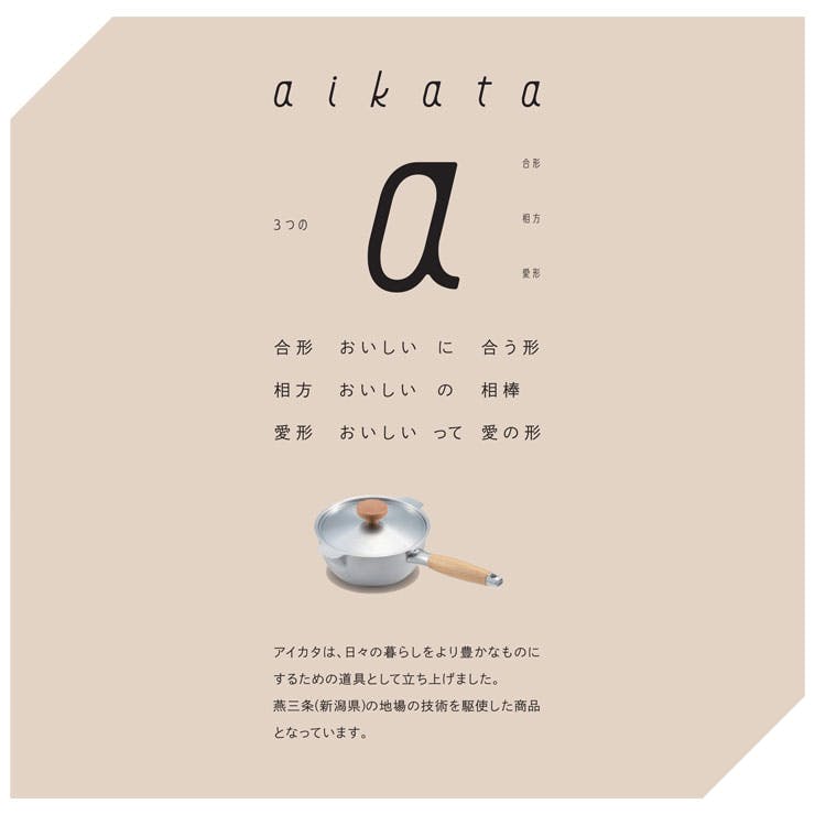 アイカタ雪平鍋の専用蓋は、鍋のラインに添わせた形状で、スライドさせて、注ぎ口を開けることで蒸気を逃がし、吹きこぼれを防止します。 ツマミの形状がフラットなので、置いたときに転がらず安定して置けます。