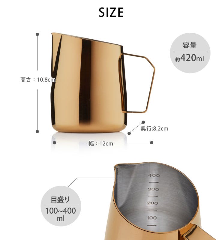 BARISTA&CO Dial In Milk Pitcher 420ml バリスタ&コー ダイヤルインミルクピッチャー【ミルクジャグ ステンレス 目盛り付き ミルクピッチャー ミルクポット ラテアート フォームミルク用】 ROSE-BRASS-GOLD