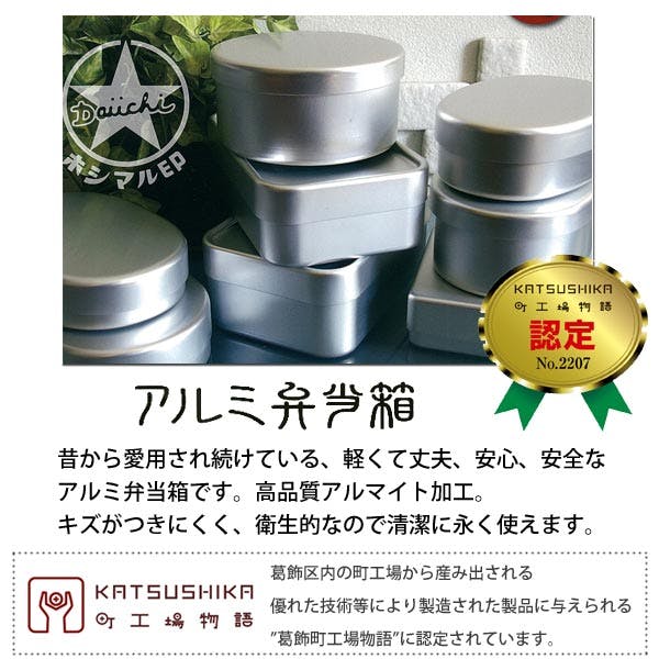 昔から愛用され続けている、軽くて丈夫な高品質アルマイト加工のアルミ弁当箱。 丸みをおびたフォルムは飽きのこないデザインです。 角を取ることで、食べやすく洗いやすい形状となりました。 東京都葛飾区の町工場で職人が一つ一つ丁寧に、作っています。