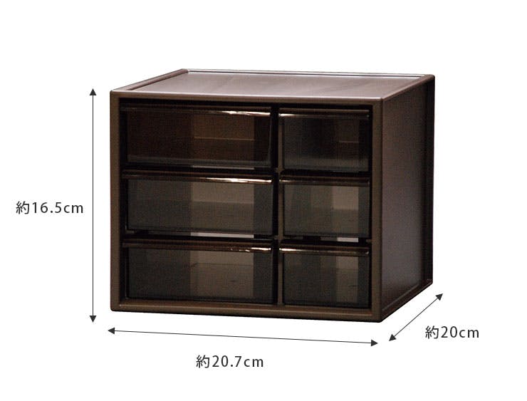 シンプルな機能とカラーリングのデスクトップ収納ケース。 中身が見えにくいクリアスモークの引き出しがスタイリッシュ。 デスク周りの小物(メモリーカードや乾電池・充電器)などの整理&収納におすすめです。 メイク道具や常備薬なども小分けにして収納できます。