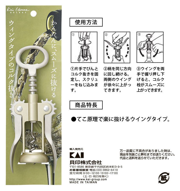 貝印 カイハウス セレクト ワインコルク抜き ウィング DH7185【ワインオープナー 栓抜き kai】