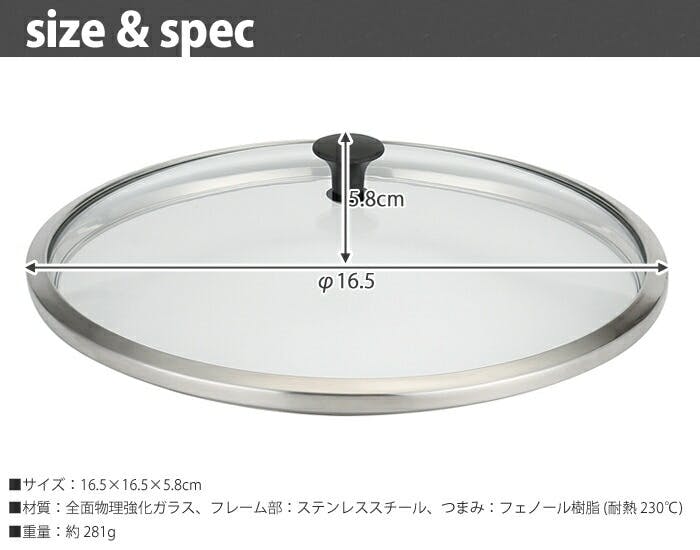 全面物理強化ガラス、フレーム部:ステンレススチール、つまみ:フェノール樹脂 (耐熱 230℃)