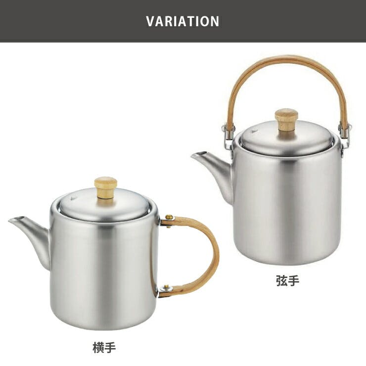 ステンレスと異素材の竹のハンドルがバランス良く、見た目も美しいポット。