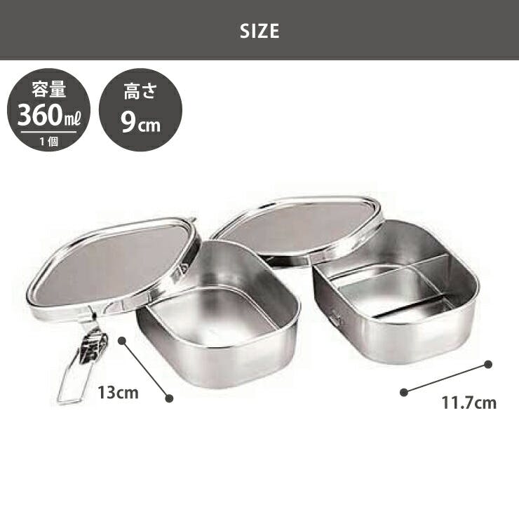 シンプルで丈夫なステンレス製ランチボックス。ごはん、おかずやサラダなどを別盛りできる2段タイプ。 バックルロックタイプのランチボックスです。蓋にはシリコンパッキン付きで、持ち運び時に汁漏れがしにくくなっています。