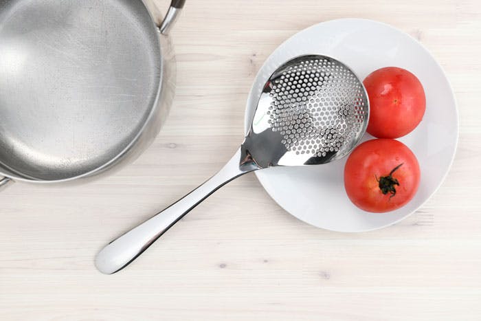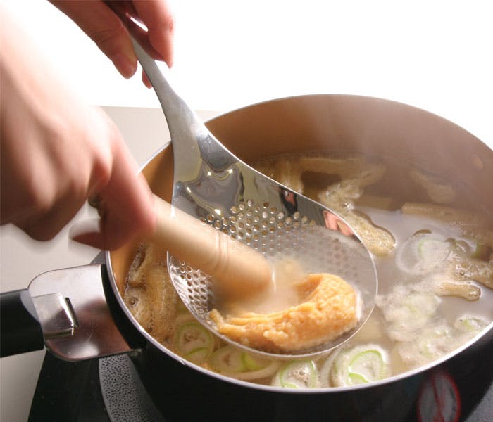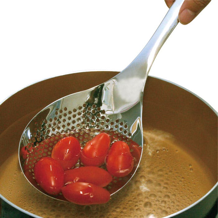 茹で、揚げどちらもOK。揚げ物の油切り、トマトの湯むき、麺の湯切り、味噌溶き、アク取り・・・など片手で便利に使えます。