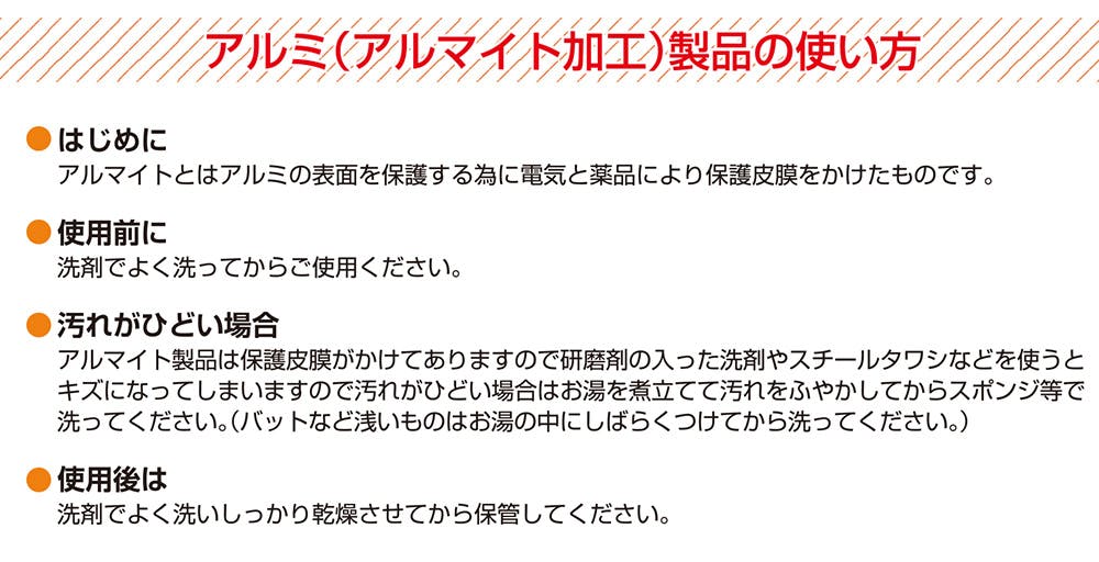 ○ 研磨剤の入った洗剤やスチールたわしなどを使うとキズがつくことがありますのでお避け下さい。