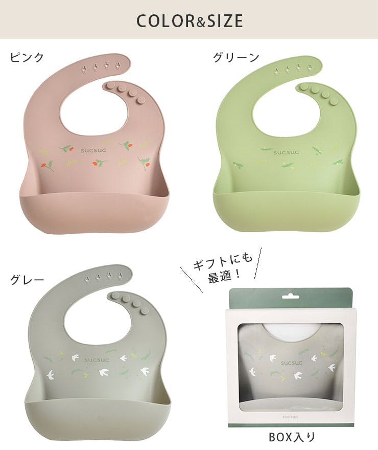 SUCSUC スクスク ポケット付シリコーンビブ 逸品社 シュガーランド【スタイ お食事エプロン よだれかけ ビブ シリコン ポケット付き 抗菌 ベビー用品】 ピンク
